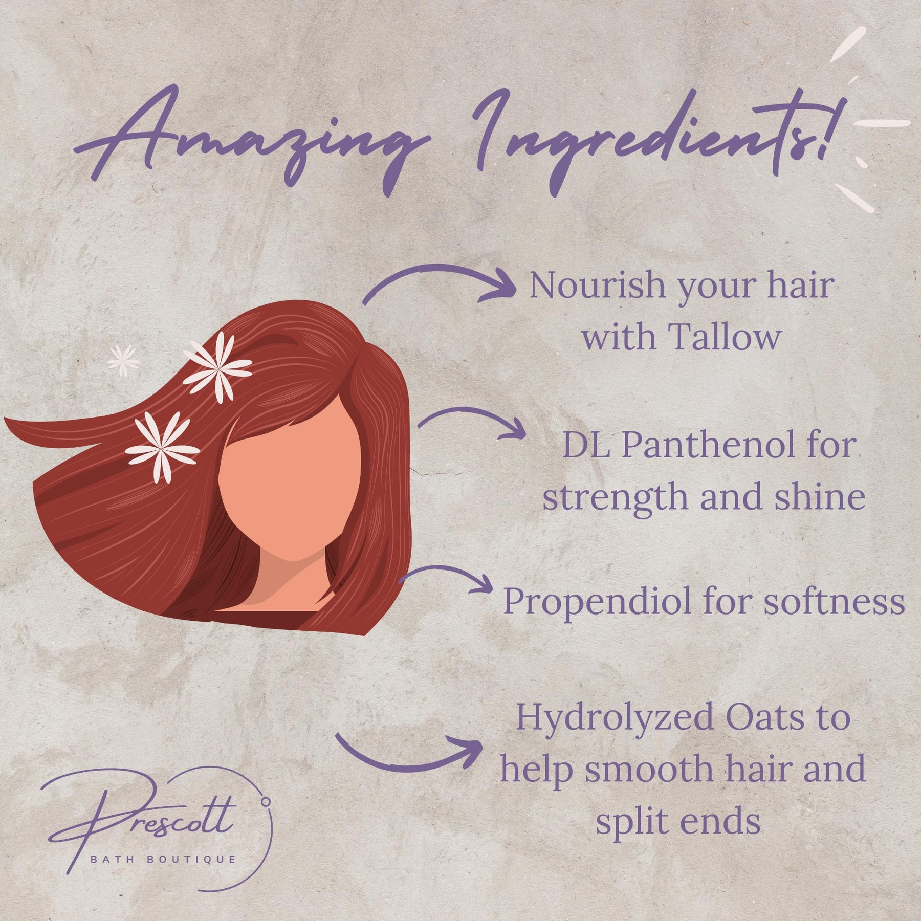 ✔️ Arizona Grass-Fed Tallow to deeply nourish the scalp and promote healthy growth